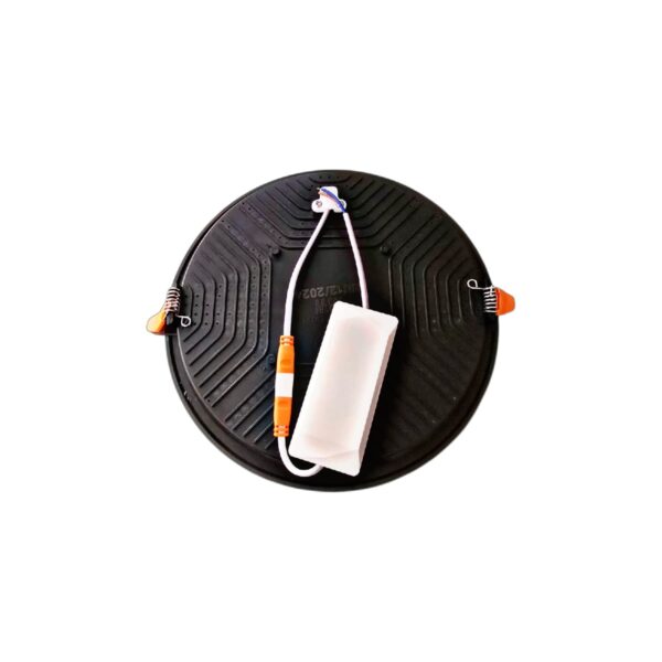 التصميم: لوحة إضاءة LED دائرية بإطار أسود أنيق وتصميم حديث مدمج للتكامل السلس مع السقف