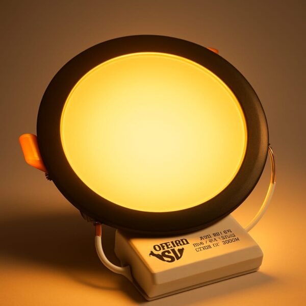 التصميم: لوحة إضاءة LED دائرية بإطار أسود أنيق وتصميم حديث مدمج للتكامل السلس مع السقف