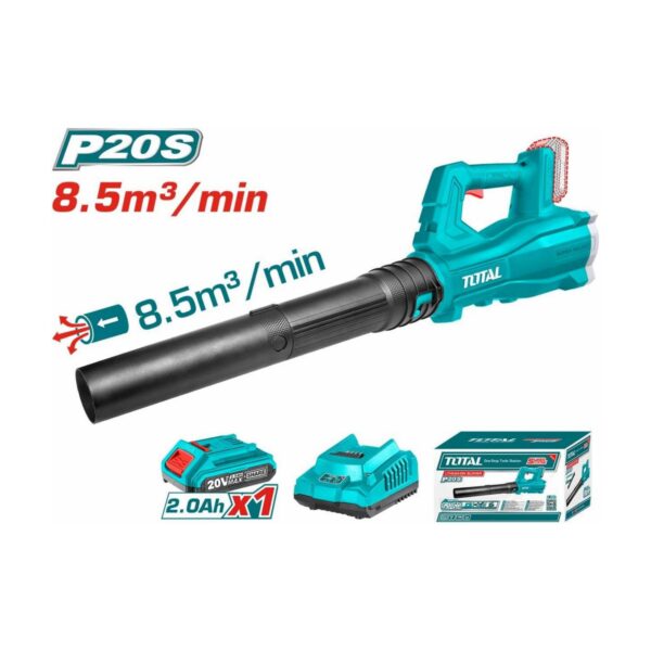 منفاخ الحديقة TOTAL هو أداة بسيطة وعملية لتنظيف الأوراق المتساقطة والعشب على الأسطح المستوية مثل الساحات ذات أسطح الطرق المختلفة والأرصفة وممرات الحدائق وما إلى ذلك. يعمل هذا الجهاز ببطارية 20 فولت، مما يوفر سرعة دوران تبلغ 15000 دورة في الدقيقة بسعة تصل إلى 8.5 متر مكعب من الهواء في الدقيقة.