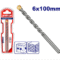 مثقاب 6×100 مم برأس من كربيد التنجستن عالي الجودة – ساق من فولاذ سبيكي مطلي بالكروم، مناسب للخرسانة والجرانيت الصلب، عبوة مزدوجة