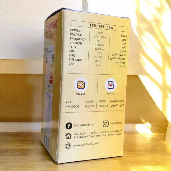 يجمع مصباح Unistar Energy Solutions 12W LED-A65 الذاتي بالصابورة مع مستشعر الحركة بين تقنية الإضاءة الذكية وكفاءة الطاقة. يتميز هذا المصباح المبتكر بمستشعر حركة مدمج ينشط تلقائيا عند اكتشاف الحركة، مما يجعله مثاليا للممرات والسلالم والمرائب والمناطق الخارجية حيث يكون التشغيل بدون استخدام اليدين ضروريا. مع إنتاج 1200 شمعة مثير للإعجاب وعمر طويل يبلغ 25000 ساعة، يوفر مصباح LED هذا إضاءة مشرقة وموثوقة مع تقليل استهلاك الطاقة بشكل كبير بنسبة تصل إلى 90٪ مقارنة بالمصابيح المتوهجة التقليدية. التصميم الذاتي يعني أنه لا يلزم وجود صابورة خارجية، مما يجعل التثبيت بسيطا مثل تثبيته في أي مقبس E27 قياسي. يعمل هذا المصباح على 175-250V بسرعة 50 هرتز مع CRI أكبر من 80، ويوفر عرضا ممتازا للألوان للرؤية الحقيقية للحياة. متوفر في درجات حرارة اللون الأبيض (6500K) ، يمكنك اختيار الأجواء المثالية لمساحتك. يناسب شكل لمبة A65 بأبعاد قطرها 65 مم وارتفاعها 127 مم معظم تركيبات الإضاءة القياسية، مما يجعله حل إضاءة متعدد الاستخدامات لكل من التطبيقات السكنية والتجارية.
