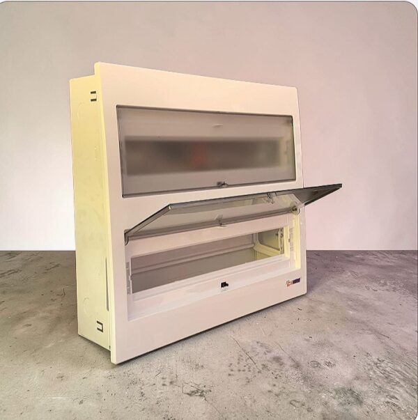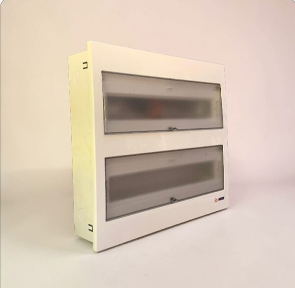 لوحة توزيع كهربائية عالية الجودة مصممة لإدارة الدوائر الكهربائية بكفاءة وموثوقية في المنشآت السكنية والتجارية. تتسع هذه الوحدة ذات الصفين لما بين 28 و36 مخرجًا، مما يوفر سعة كبيرة لتنظيم دوائر متعددة بسهولة. يتميز الغلاف الأبيض الأنيق ببابين شفافين قابلين للطي، مما يسمح بفحص المكونات الداخلية بسرعة مع الحفاظ عليها محمية. يضمن التصميم المتين عمرًا طويلًا، كما أن التصميم المدروس يجعل التركيب والصيانة سهلين للفنيين الكهربائيين المؤهلين. يفتح كل باب بسلاسة على مفصلاته، مما يتيح الوصول بسهولة إلى سكة DIN ومنافذ توصيل الأسلاك بالداخل. سواء كنت تقوم بإنشاء نظام كهربائي جديد أو ترقية نظام قائم، فإن صندوق التوزيع هذا يوفر لمسة نهائية أنيقة واحترافية تناسب التصميمات الداخلية الحديثة. مناسب للتركيب السطحي أو المدمج، وهو خيار موثوق لأي متطلبات توزيع كهربائية.