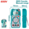 الشاشة: TRUR RMS 2000 عد، تيار مستمر/متردد: 6000 ميكرو أمبير/60 مللي أمبير/600 مللي أمبير/10 أمبير، جهد مستمر: 600 مللي فولت/6 فولت/60 فولت/600 فولت/1000 فولت، جهد متردد: 600 مللي فولت/6 فولت/60 فولت/600 فولت/750 فولت، المقاومة: 600 أوم/6 كيلو أوم/60 كيلو أوم/600 كيلو أوم/6 ميجا أوم/60 ميجا أوم، السعة: 10 نانو فاراد/100 نانو فاراد/1000 نانو فاراد/10 ميكرو فاراد/1000 ميكرو فاراد/10 مللي فاراد/100 مللي فاراد، التردد: 10 هرتز/100 هرتز/1000 هرتز/10 كيلو هرتز/100 كيلو هرتز/1000 كيلو هرتز/10 ميجا هرتز، دورة التشغيل: 1%~95% ±(2.0% +3)، كشف الجهد بدون تلامس، تمييز بين الخط الحي والخط المحايد اختبار الثنائيات، الحد الأقصى/الأدنى، تثبيت البيانات، إضاءة خلفية، ضوء وامض، مؤشر انخفاض البطارية، مدخل طاقة، مؤشر LED، بطاريتان LR03 AAA، مُغلفة بغلاف بلاستيكي مزدوج.