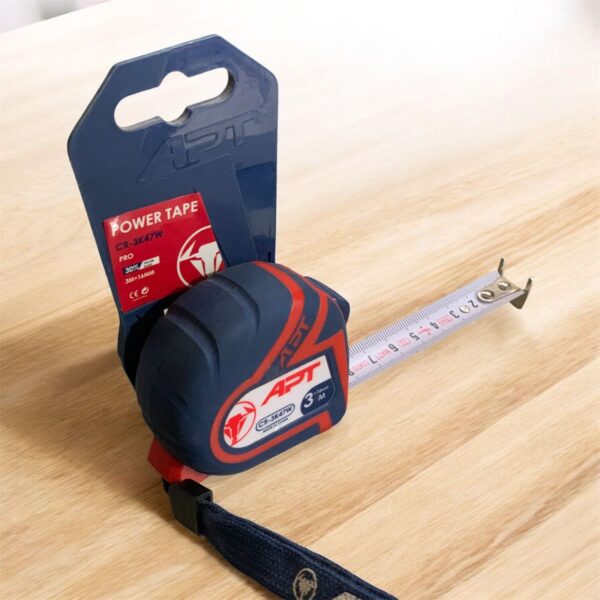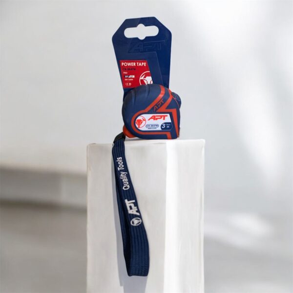تصميم احترافي: يتميز شريط القياس APT بغلاف متين باللون الأزرق الداكن والأحمر مع علامات واضحة لقياسات دقيقة تصل إلى 3 أمتار