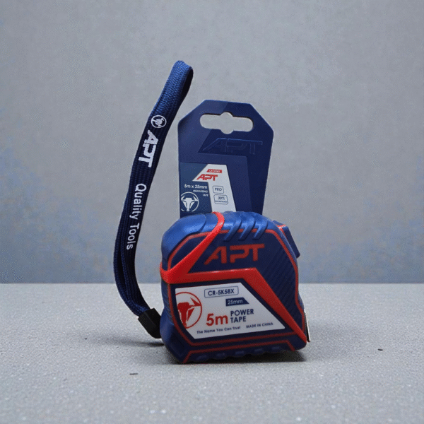 تصميم احترافي: يتميز شريط القياس APT بغلاف متين باللون الأزرق الداكن والأحمر مع علامات واضحة لقياسات دقيقة تصل إلى 5 أمتار