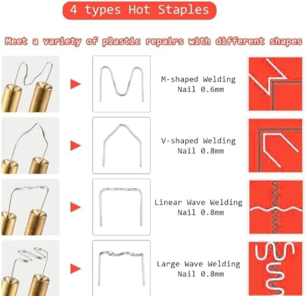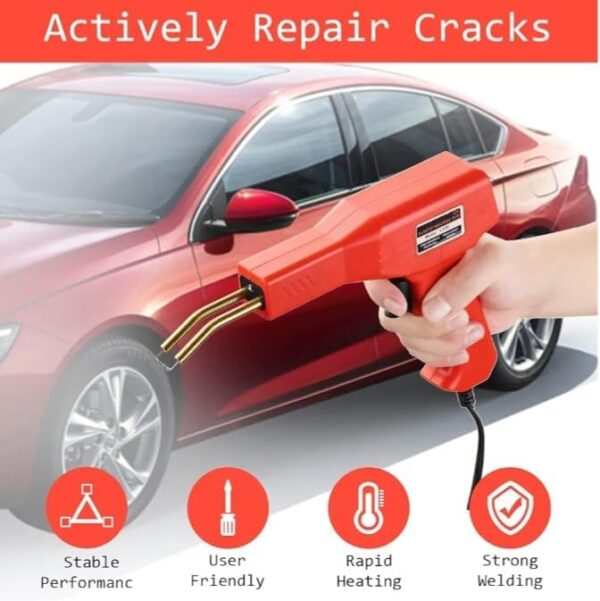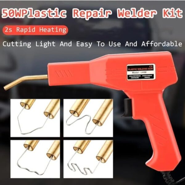 ماكينة تدبيس ولحام البلاستيك 50 وات ، ماكينة إصلاح PVC، خرج الطاقة: 0-15 أمبير – أداة إصلاح البلاستيك هذه سهلة التشغيل ومريحة الاستخدام مع كماشة. – إصلاح الأجزاء البلاستيكية والألياف المكسورة… المصدات وما شابهها – صُممت هذه الأداة لإصلاح وتقوية مصدات السيارات، ولوحات القيادة، وحوامل المصابيح، والحلقات البلاستيكية، وغيرها من المكونات البلاستيكية. – مقبض أداة إصلاح مصدات السيارات مريح للإمساك، ويمكنك العمل لفترة طويلة دون تعب. – مصنوعة من بلاستيك ABS عالي الجودة، متينة وعملية للاستخدام.