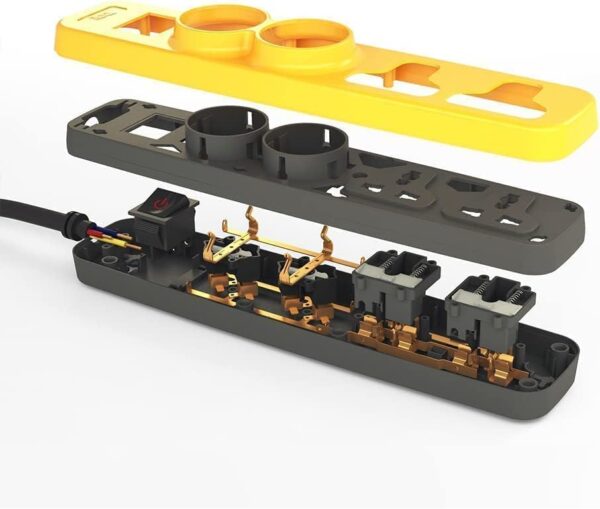 مشترك كهربى 4 عيون (2 عين ثنائية بقوة تحمل 3680 وات + 2 عين ثلاثية بقوة تحمل 2860 وات) مما يجعلة الأنسب للاستخدام مع جميع أنواع الفيش ومع جميع الاجهزة