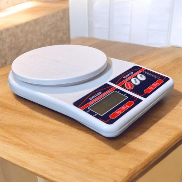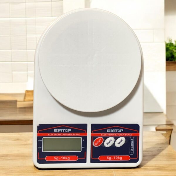 يعد مقياس المطبخ الإلكتروني EMTOP أداة أساسية لأي شخص يقدر الدقة في المطبخ. سواء كنت تقيس مكونات الخبز، أو تقسم الوجبات للمتطلبات الغذائية، أو تزن العناصر للطهي، فإن هذا المقياس الموثوق يوفر قراءات دقيقة من 5 غرامات إلى 10 كيلوغرامات. تجعل الشاشة الرقمية الواضحة من السهل قراءة القياسات في لمحة، مما يدل على الوزن في كل من الجرام والأوقية لراحتك. مع عناصر تحكم زر بسيطة بما في ذلك وظائف ON / OFF و MODE و TARE و ZERO، يمكنك التبديل بسرعة بين الوحدات وإعادة تعيين المقياس حسب الحاجة. وظيفة TARE مفيدة بشكل خاص لوزن المكونات في الحاويات، لأنها تسمح لك بطرح وزن الحاوية لإجراء قياسات دقيقة. لا يشغل تصميمه المدمج مع منصة وزن دائرية مساحة كبيرة للعداد، مما يجعله مثاليا للمطابخ من جميع الأحجام. تكمل النهاية البيضاء النظيفة أي ديكور مطبخ بينما يسهل مسحه وصيانته. يجمع مقياس المطبخ ذو القيمة العالية هذا بين الوظائف والقدرة على تحمل التكاليف، مما يجعل القياسات الدقيقة متاحة لمهام الطهي والخبز اليومية.